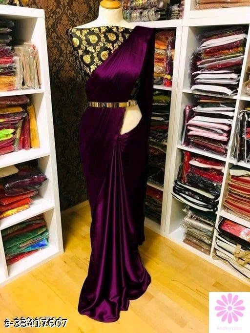 Chanderi Poly Chiffon Lace border Saree With Blouse