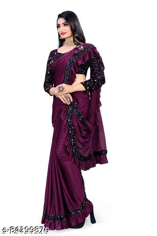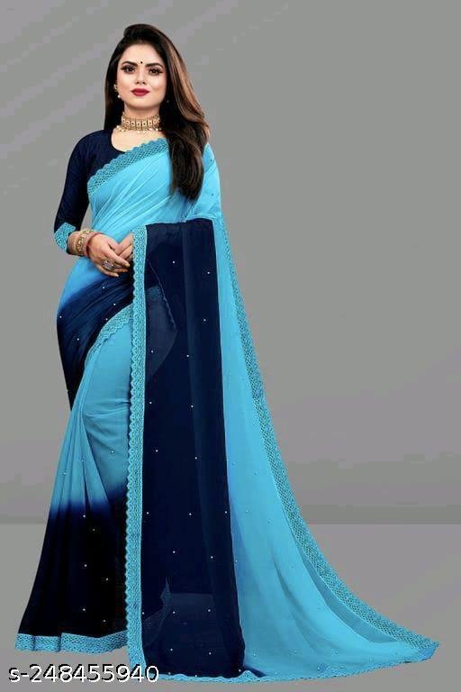 Chanderi Poly Chiffon Lace border Saree With Blouse