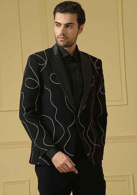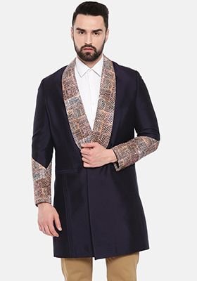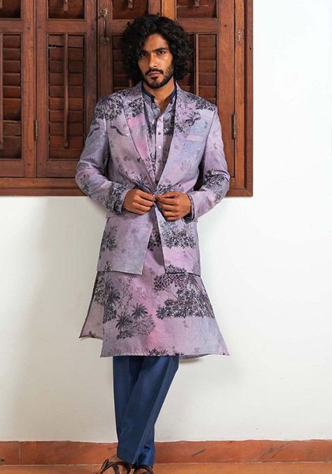 Pink Embroidered Raw Silk Bundi Jacket For Men