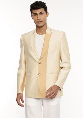 Beige And Gold Two Button Blazer For Men