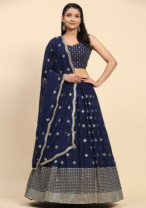 Blue Sequin Embroidered Faux Georgette Lehenga Set