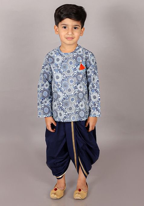 Blue Printed Kurta With Dhoti Pants (Set of 2)