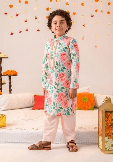 Multicolour Printed Kurta With Pajama (Set of 2)